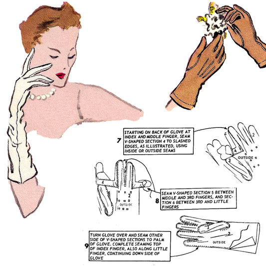 1940s 'Dashing Deb' Gloves / Size 7-1/2 / Paper Pattern