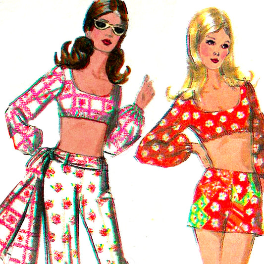 PAPER Pattern 1970s Midriff Blouse / Shorts / Wide Leg Pants / Bust 36