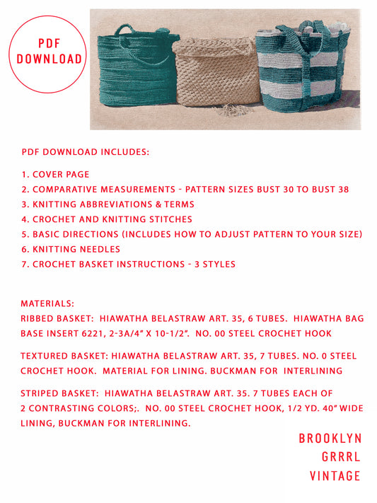 1950s Vogue Three Crocheted Straw Baskets Pattern