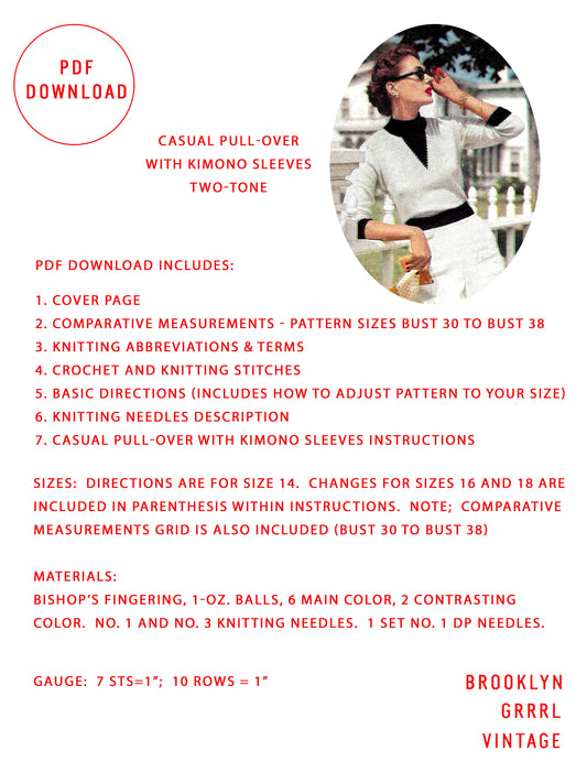 1950s Vogue Pullover with Kimono Sleeves / Knitting Pattern