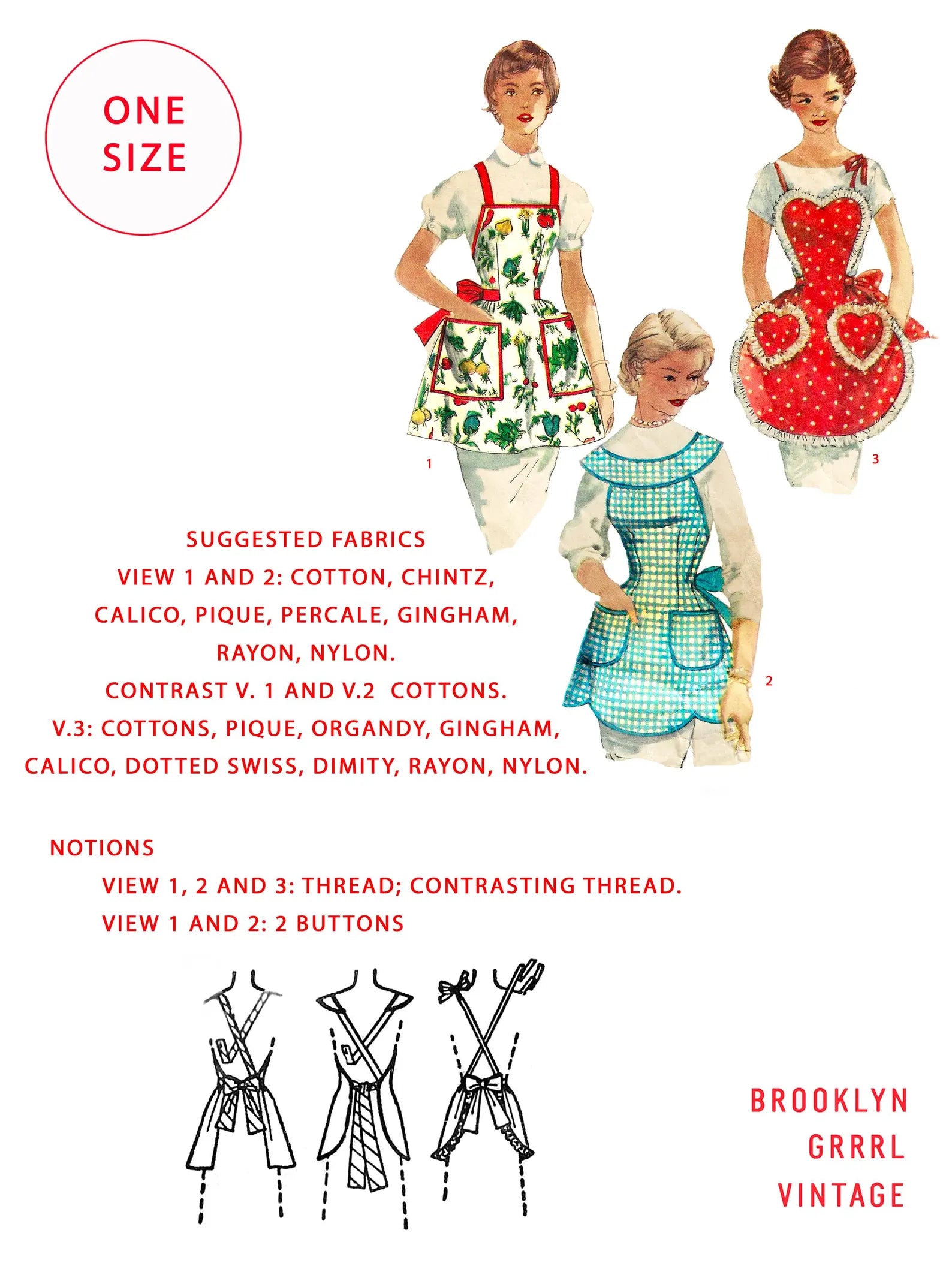 Included: Three apron designs