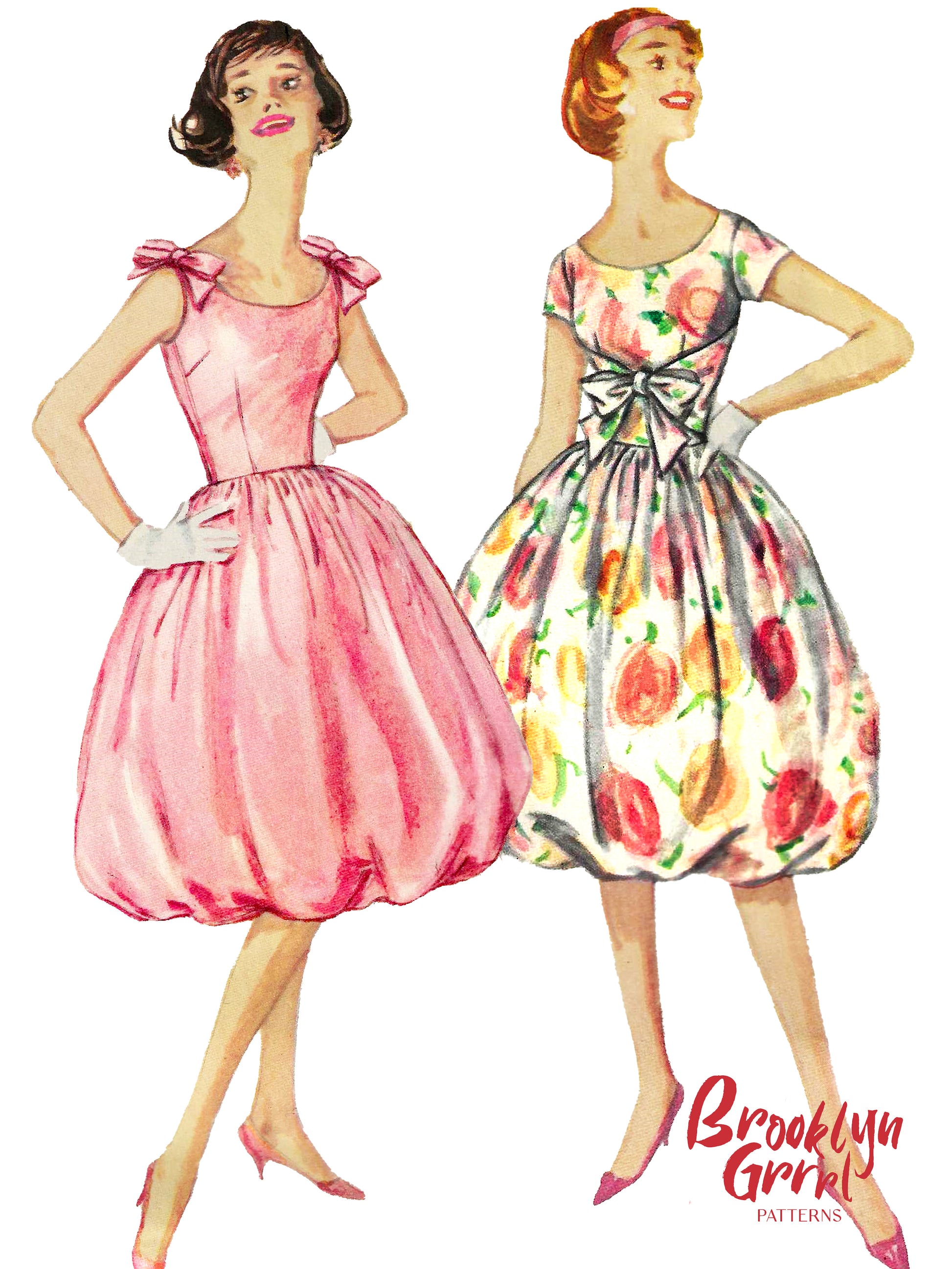 The sculptural bubble hem creates irresistible movement and a chic, fashion-forward look that feels both bold and beautifully refined. By the late 1950s, this silhouette became a favorite for cocktail parties, proms, and evening wear, with The New York Times declaring it “one of the prettiest dance fashions for evening” in 1958.